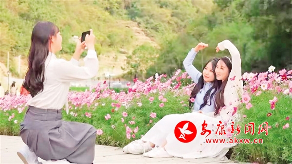 相映成趣游人如織金秋時節(jié),在白河縣構(gòu)朳鎮(zhèn)廟山寨花海產(chǎn)業(yè)園,盛開的格桑花在風(fēng)中搖曳。游客漫步在路上,心緒隨著搖曳的格桑花一同起伏,沉浸在秋日的寧靜與美好……