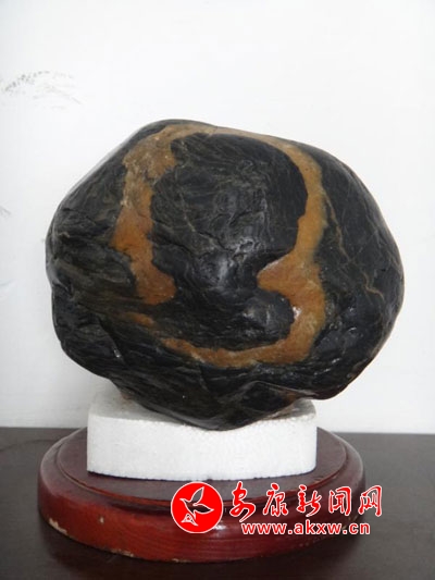 此石為漢江水墨石,亦稱金帶石,石長(zhǎng)22㎝、寬20㎝、高16㎝.石形完整,色彩對(duì)比明顯,頭像輪廓比例協(xié)調(diào),人物五官清晰可見,面部表情呈沉思狀,尤以“魯迅”先生標(biāo)志性小寸發(fā)和八字胡最為傳神,令人嘆為觀止!