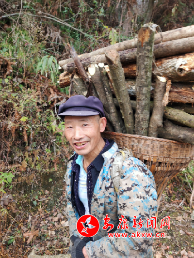 途中,偶遇一砍柴老農(nóng),身著迷彩雨衣,手腳麻利的將倒地樹木,砍成2尺多長的木段。見來人,憨憨一笑,算是大個(gè)招呼。聊了一會(huì)天,得知眼前這位面色紅潤、硬朗的老人,年逾七十。