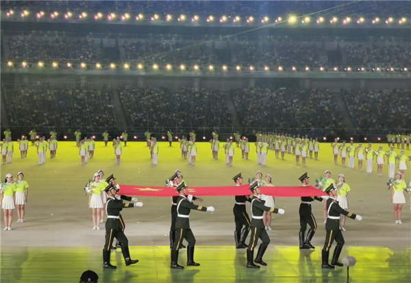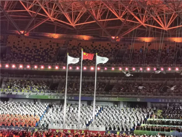 隨后,五星紅旗冉冉升起,6萬人齊聲唱國歌。“起來,不愿做奴隸的人們,把我們的血肉,筑成我們新的長城……”當(dāng)這首從小根植在我們腦海中的歌曲在奧體中心上空飄揚(yáng),場面十分壯觀,這一刻我不禁熱淚盈眶!第一次參加如此壯觀的升旗儀式,第一次近距離參加如此龐大的體育盛會,內(nèi)心頃刻間升騰起無比強(qiáng)大的民族自豪感,真切感受到祖國的繁榮強(qiáng)大、團(tuán)結(jié)富強(qiáng),越發(fā)覺得我們能夠生在長在偉大的中國,是多么自豪、多么驕傲!能夠生活在這個(gè)繁榮昌盛的時(shí)代,是多么幸運(yùn)、多么幸福!