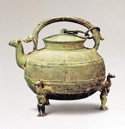 東漢許慎在《說文解字》里有言:“盉,調(diào)味也。從皿,禾聲。” 王國維在《說盉》中言:“余謂盉者,蓋和水于酒之器,所以節(jié)酒之厚薄也。”可見盉是古代酒器,是用來調(diào)和米酒,加水來沖兌酒味濃淡的。從考古發(fā)現(xiàn)看,多分布于山西、陜西、河南、江蘇、安徽等地,尤以江淮地區(qū)分布最多。西周中期以后,盉常與盤共出,說明盉的功能有所轉變,從酒器變?yōu)樗鳎徽撟鳛榫破鬟是水器,“盉”與人們的日常生活總是密切相關,它是“茶壺”的鼻祖,現(xiàn)代用的茶壺即是由它發(fā)展而來。