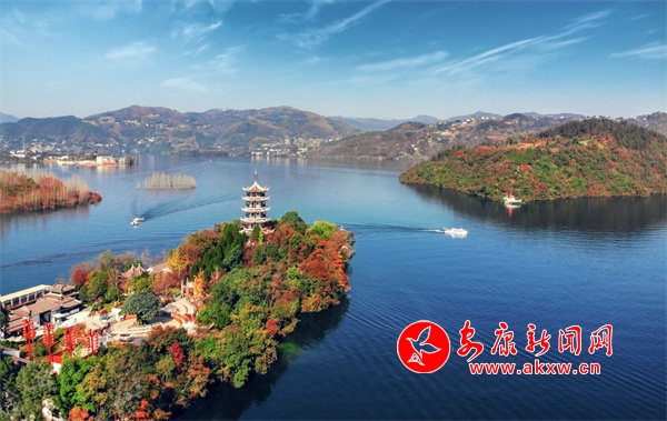 一路泛舟游覽,湖心遠(yuǎn)眺幾座翠綠的高山,那些山高低起伏,錯(cuò)落有序,像一條蜿蜓曲折的長(zhǎng)龍。