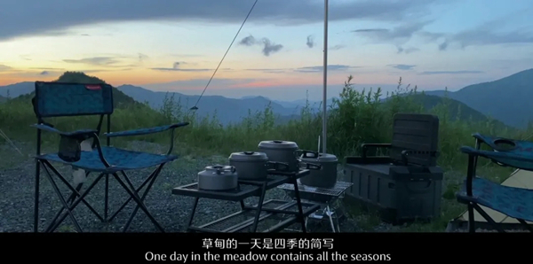 一邊是花海,一邊是云杉,一邊是陜⻄,一邊是重慶。地域的劃分沒有阻斷兩邊的往來(lái),界碑只是一種提示,對(duì)于露營(yíng)者而言,更在乎這綿延的花木,這自然饋贈(zèng)的神奇,這帳篷帶來(lái)的生命體驗(yàn)。
